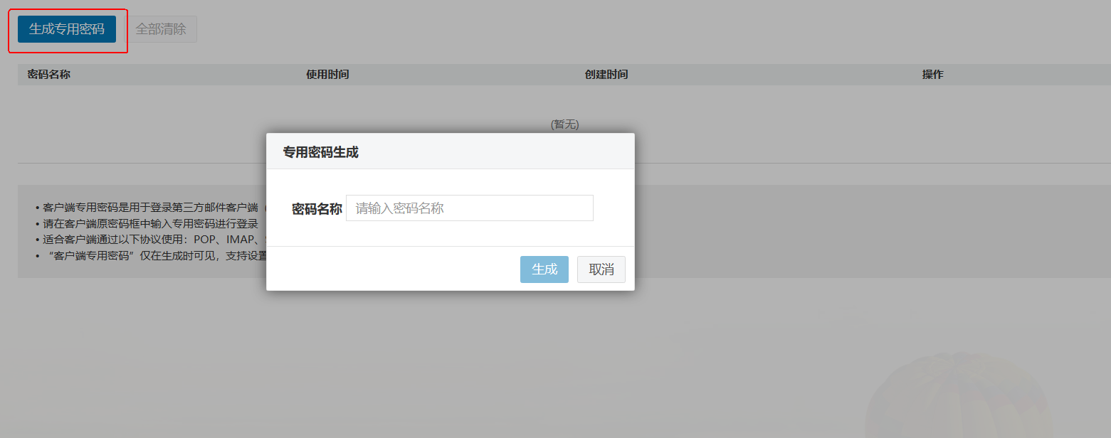3.点击“生成专用密码”,输入“密码名称”(“密码名称”只是个名字,什么都可以),最后点击“生成”。